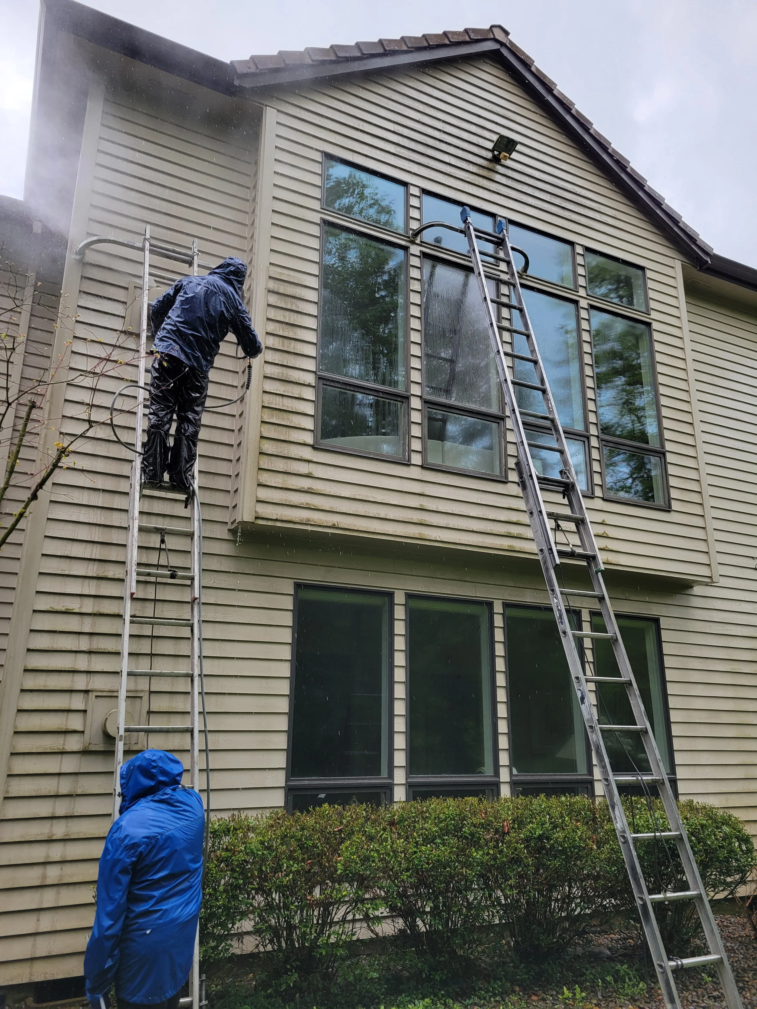 Before any paint/stain goes on, we thoroughly pressure wash your home or business to remove dirt, mildew, and loose paint. This step ensures a smooth, clean surface so our high-quality paint adheres properly and lasts longer. Taking the time to prep surfaces with care is one of the ways we guarantee a durable, beautiful finish every time.